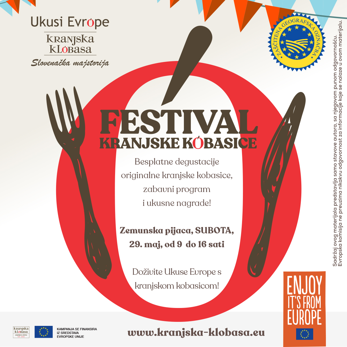 Srećni smo što možemo da potvrdimo da će se prvi festival kranjske kobasice održati u subotu, 29. maja, na Zemunskoj pijaci u Beogradu, što nikako ne smete da propustite.